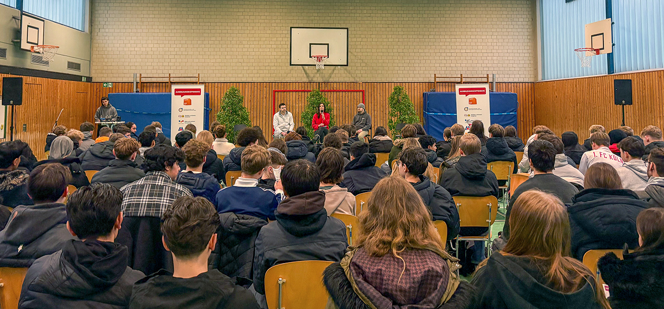Mit einem lebendigen Termin an der Realschule Kettwig hat unsere Handwerker-Tour vor 80 Schülern im neuen Jahr wieder Fahrt aufgenommen. Der Tourstopp war Teil unserer branchenspezifischen Tourreihe in Kooperation mit der Kreishandwerkerschaft Essen, bei der Vertreter verschiedener Gewerke spannende Einblicke in Ausbildung, Karrierewege und den Alltag im Handwerk gaben.