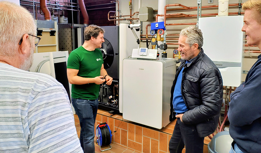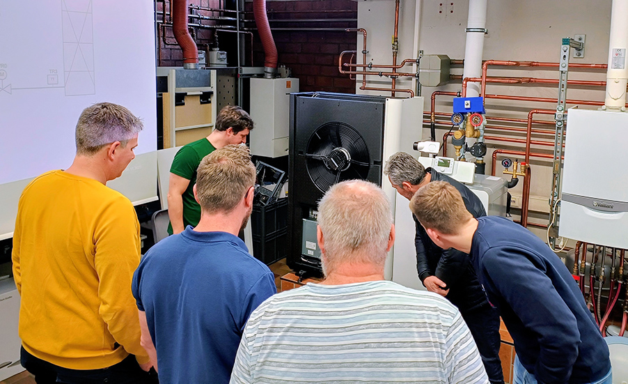 Zwei Tage lang wartete auf den Teilnehmerkreis ein aufschlussreiches Schulungsprogramm rund um Wärmepumpen, theoretisch wie auch praktisch am Heizungssystem der SHK-Werkstatt und stets auf das Handwerk abgestimmt. Der Lohn für die Mühe? Neben den zahlreichen Erkenntnissen, die anschaulich und wissenschaftlich fundiert von erfahrenen Referenten der Heat Pump Academy GmbH vermittelt wurden, erhalten die Teilnehmenden nach bestandener Online-Prüfung einen offiziellen Qualifizierungsnachweis sowie Eintrag ins Sachkundigenregister des Vereins Deutscher Ingenieure (VDI) e.V., der sie öffentlichkeitswirksam als wärmepumpensachkundig ausweist.